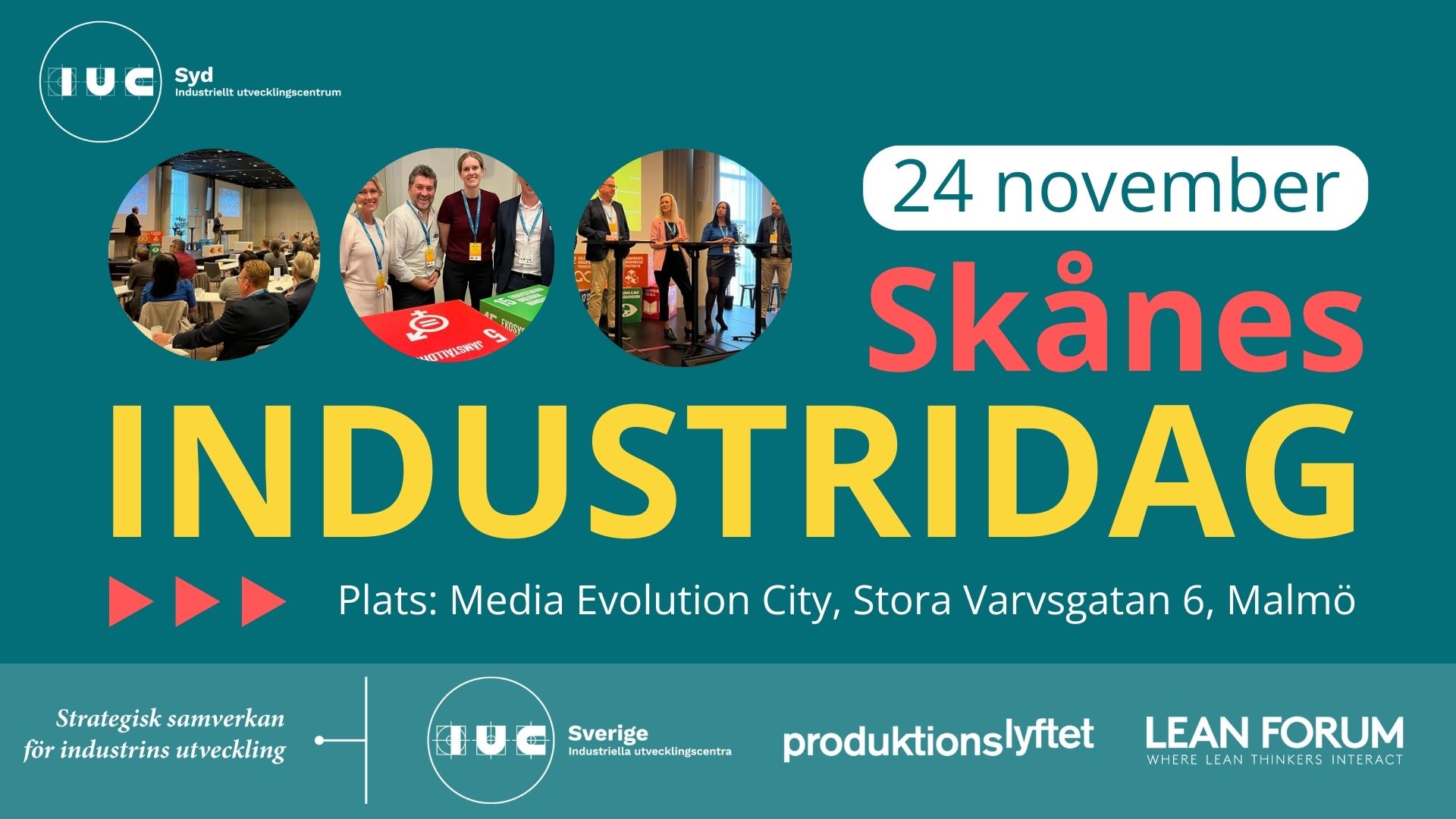Men vilka är strategierna, arbetssätten och förhållningssätten som gör en förändrad spelplan kan skapa grund till förbättringar, förnyelser och framgångar långt utanför Skånes och Sveriges gränser? Tillsammans med Lean Forum och Produktionslyftet välkomnar IUC Syd er till Skånes Industridag. Under en heldag kommer ni få möjligheter att bredda och fördjupa er i frågorna, utmaningarna och erfarenheterna som gör att skånska tillverkande företag kan ta nya – och snabbare – steg framåt i sin utvecklingsresa.Programmet är under produktion och kommer att uppdateras hela vägen fram till vi ses den 24 november.