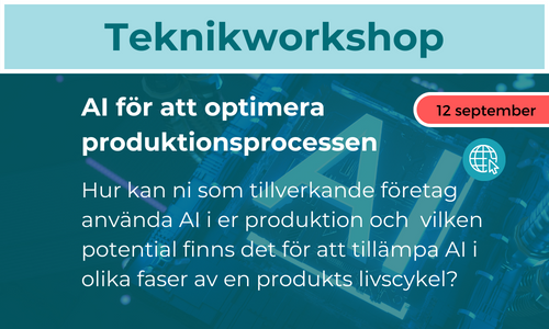 Workshoppen ger dig insikt kring möjligheterna att använda AI i produktionen och verktyg för att ta fram en plan för att utnyttja AI:s möjligheter i ditt företag. Ni kommer att få inblick i den senaste utvecklingen när det gäller tillämpning av AI i olika faser av en produkts livscykel och AI:s potential för miljömässig hållbarhet. Ni kommer att få lyssna till, Peter Funk, professor i AI, LiU, Johannes Matschewsky, biträdande universitetslektor i circular design, LiU och Tomohiko Sakao, professor i lifecycle engineering, LiU, som bland annat kommer att presentera en AI-studie som tittat på optimeringar i produktionsprocessen och hur AI kan användas för detta. IUC Syd i samarbete med RISE och Produktion2030.