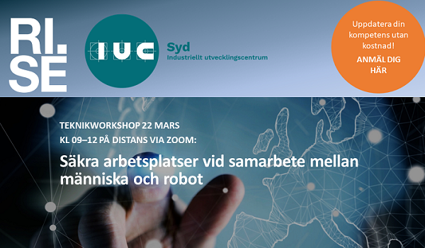 Idag har eller planerar alltfler företag för automation där operatörer och robotar samarbetar, så kallade kollaborativa applikationer. I den här Teknikworkshoppen är fokus ökad kunskap om ergonomi, arbetsmiljö och säkerhet. Teknikworkshoppen riktar sig till dig som har intresse av hur man bedömer ergonomisk belastning i manuella arbetsmoment och hur man planerar för säker automation där robot och operatör samarbetar. När: Tisdagen den 22 mars kl. 09–12 Var: Via Zoom, länk skickas ut innan workshoppen Kostnad: Teknikworkshoppen är kostnadsfri Workshopledare: Presentationerna görs av RISE-medarbetare Magnus Widfeldt, Caroline Jarebrant, Sandra Mattsson, Björn Backman och Johan Hedberg. Begränsat antal platser, anmäl dig redan idag. Sista anmälningsdag är 17 mars. MER INFORMATION OCH ANMÄLNINGSLÄNK HÄRDet här är en Teknikworkshop Våra Teknikworkshoppar erbjuder ny kunskap och teknik från forskning till företag. I Teknikworkshopparna får du ta del av nya resultat från forskningsprojekt, paketerat på ett sätt som passar framför allt små och medelstora företag. Alla Teknikworkshoppar leds av forskaren vilket ger möjlighet till fördjupning. Workshopformatet gör det också möjligt att diskutera utmaningar, tillämpningar mm. med både forskaren och andra företag som deltar.