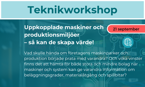 IUC Syd tillsammans med Produktion2030 och RISE välkomnar er till en inspirerande teknikworkshop där ni har möjlighet att lära er mer om vinsterna och värdena som gömmer sig i de digitaliserade och uppkopplade värdekedjorna. Visst låter det lärorikt? Anmäl dig till teknikworkshoppen här Teknikworkshoppen leds av: Martin Friis, digitaliseringsexpert, Teknikföretagen och Produktion2030. Magnus Mörstam, digitaliseringsexpert, Teknikföretagen och Produktion2030.