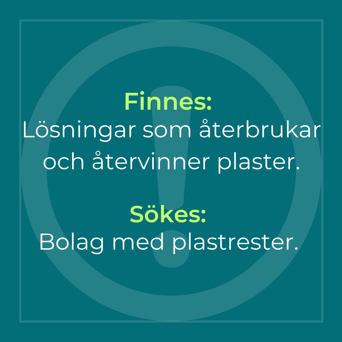 Använder ni plaster, som inte är förpackningar, och som ni vill kunna återbruka och återvinna? Nu har ni möjligheten att hitta en samarbetspartner som kan ta era tankar och planer till handling.