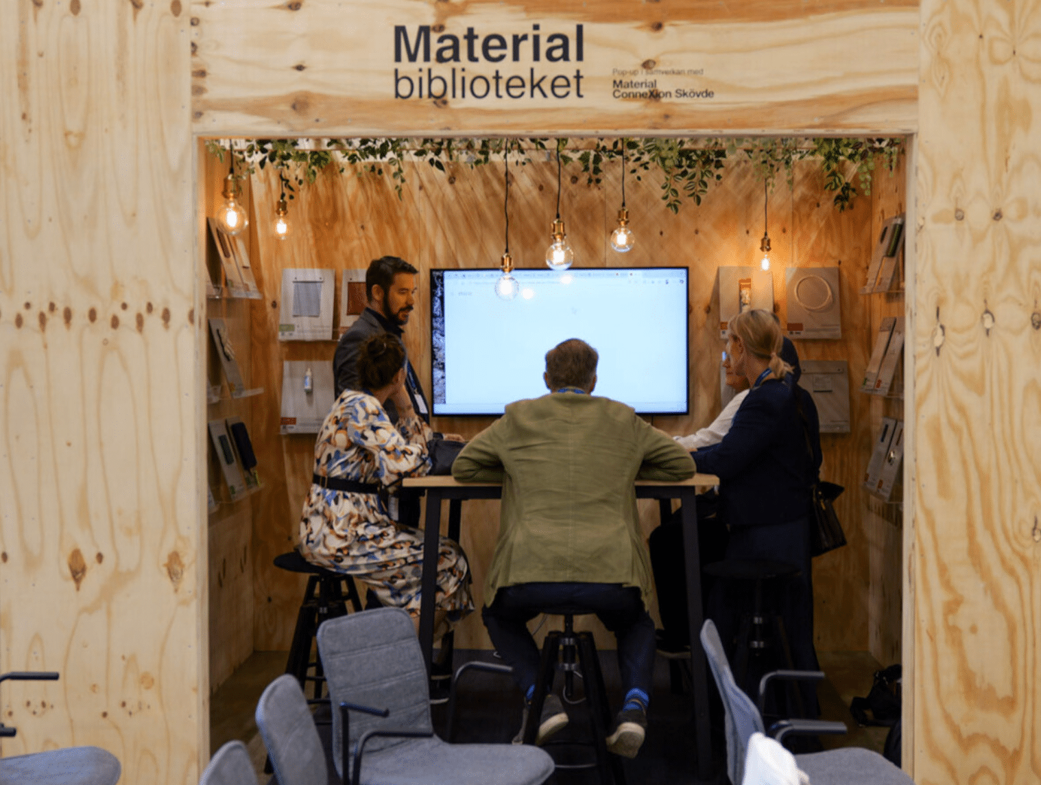 På plats i vårt utvecklingscenter finns över 60 hållbara material att se, känna på och inspireras av. Bakom ytan ligger en sökbar databas med över 10 000 material från hela världen – samma plattform som används av Unilever, Apple och Nike. Materialbiblioteket är ett samarbete mellan IUC Syd och vår IUC-kollega IDC West Sweden i Skövde.